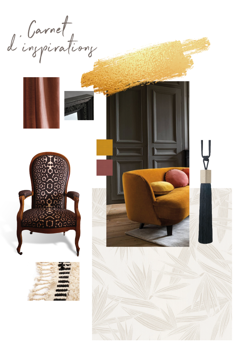 (carnet d’inspiration, mise en perspective, échantillons, budget, planning…)